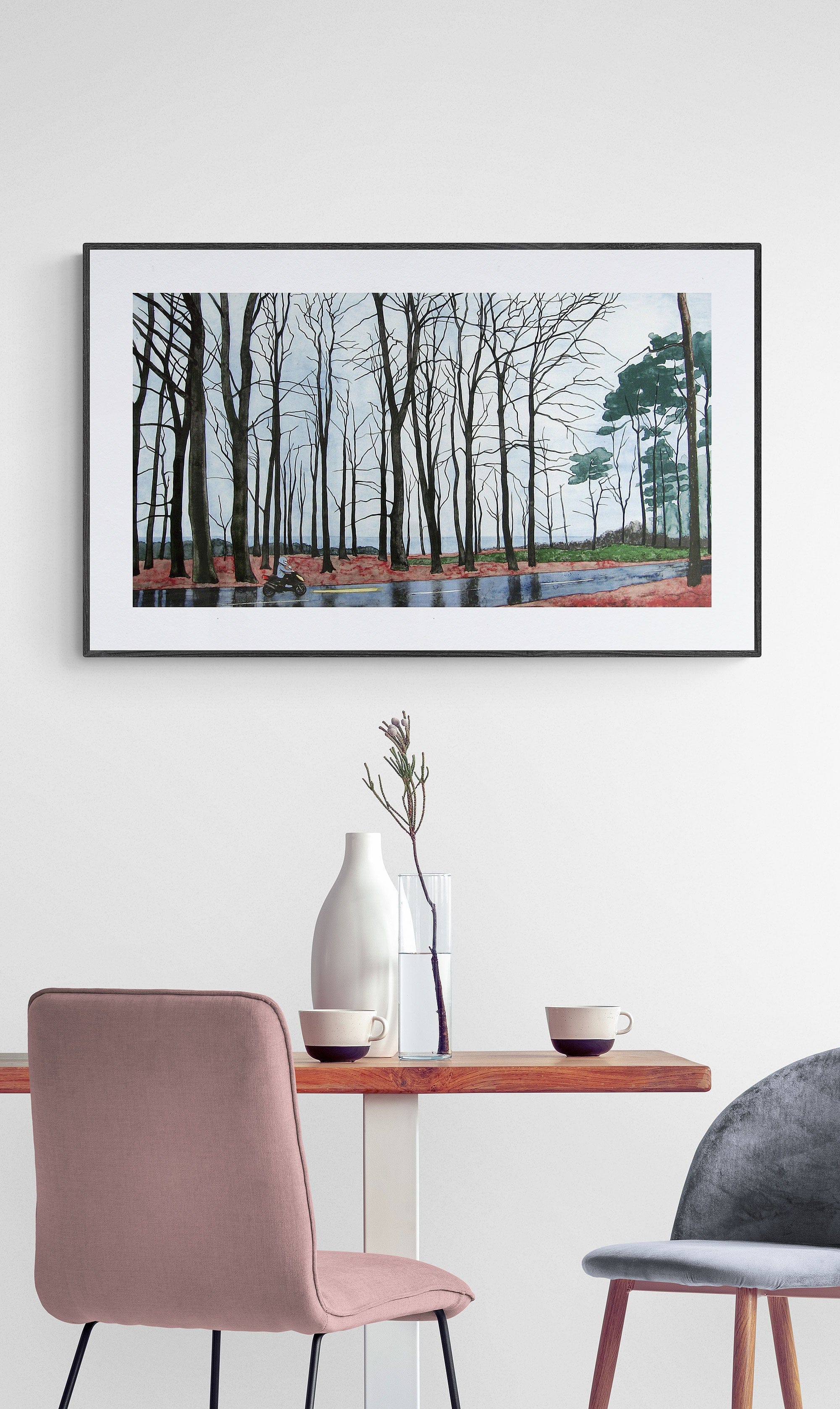 - If framing is added, please allow 14 additional handling days for framing. The artwork is shipped in a thin dark wooden frame and UV-protection glass or Plexiglass, according to the artist's recommendations. For any questions, contact us at info@wetterlinggallery.com.
